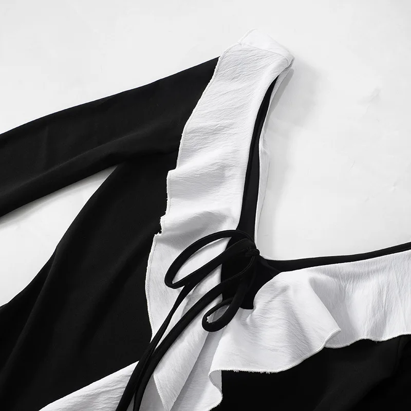Women Sexy Long Flare Sleeve Lace-up Evening Mini Dresses